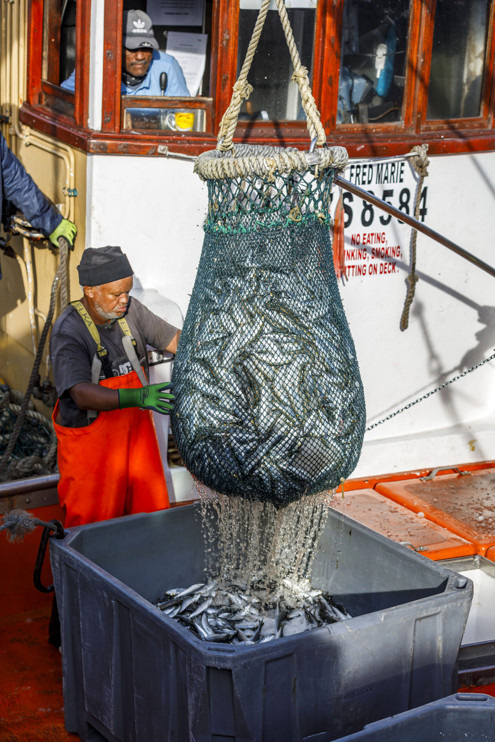The sardine is caught all year, with summer and spring traditionally stronger catching period. The Department of Environment, Forestry and Fisheries (DEFF) manages the resource carefully, sending research vessels out at least twice a year to review the biomass. They make scientific decisions regarding the Total Allowable Catch (TAC).